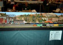 Autumn Rails All Scales Train Show, in Asheville, NC (at the Western NC Agricultural Center) on Fri. October 14th (1-7), Sat. 15th (9-3). Download the flyer [HERE] for more details about the show. We joined forces (and modules) with the French Broad e'N'pire Ntrak club, for an exciting long run. We had a few challenges at startup, but were able to work through those and run some very long trains through some good-looking scenery.